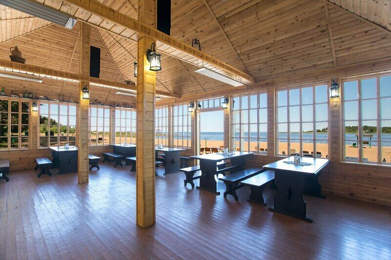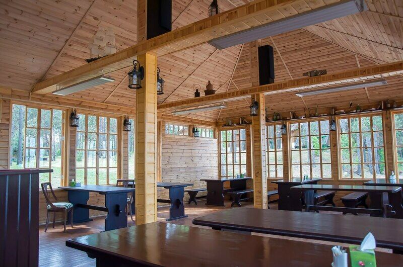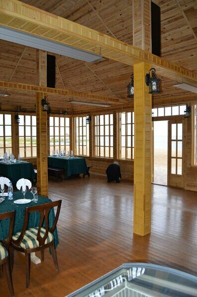Панорамное кафе на берегу Псковского озера. Вместимость до 40 человек. Освещение, инфракрасные потолочные обогреватели, большой холодильник. Санузел с холодной и горячей водой находится в 5 м от кафе. Перед кафе 60 м площадка для танцев и др. мероприятий.