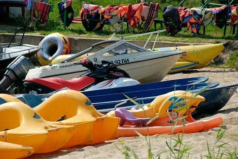 Гости пляжа могут воспользоваться надувными аттракционами на воде, прокатом лодок, катамаранов, гидроцикла, покататься на «Банане”, и осуществить прогулку на катере по акватории Псковского озера.
