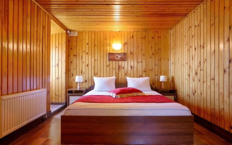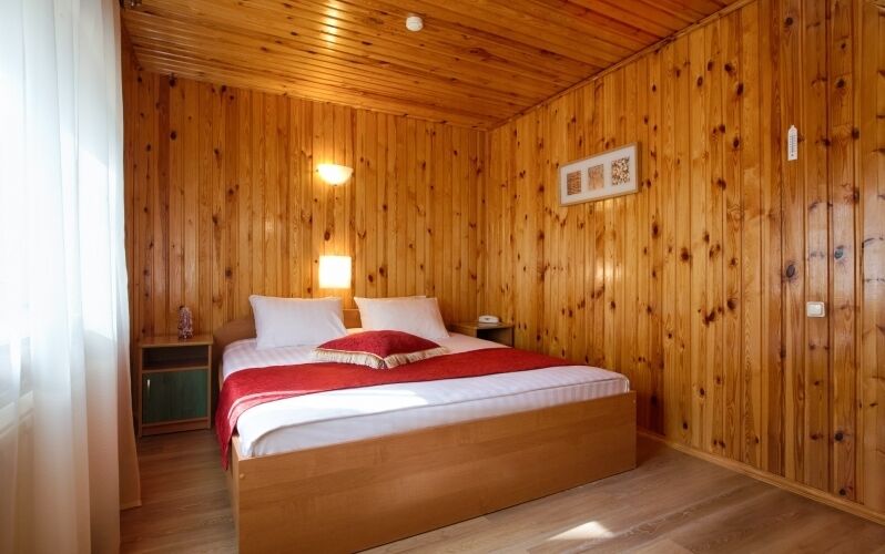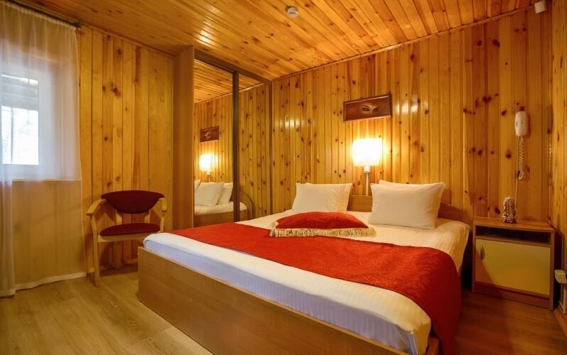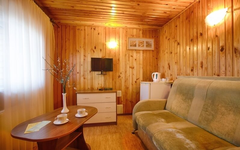 Однокомнатный номер с сауной. Расположен в непосредственной близости к ресторану. Отдельный вход.