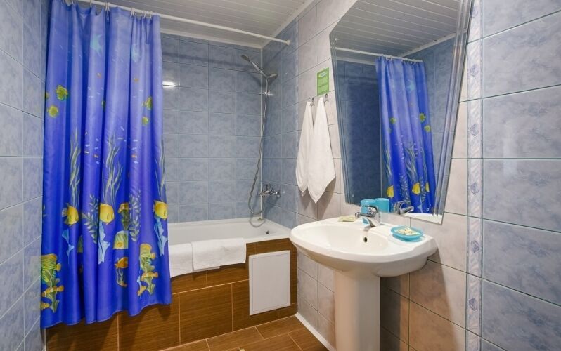 В номере: душ, туалет, TV, сауна, холодильник.