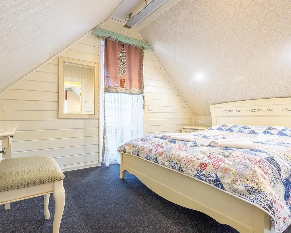 Короткий отпуск с друзьямиОстанавливались во время поездки в ПечорыУютный чистый домик, удобно расположен рядом с монастырем, мебель достаточно свежая, постельное белье чистое, все чисто, за помещением и территорией постоянно следят в плане чистоты, вся техника в рабочем и хорошем состоянии, есть необходимое число посуды. Из за того что вокруг тишина, хорошая слышимость в доме-если внизу включить телевизор наверху всё слышно и мешает детям спать, но это вряд ли можно считать недостатком.