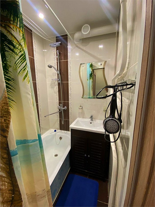 телевизор, Wi-Fi, холодильник, кондиционер, фен, микроволновая печь, утюг, ванная комната, ванна, гигиенические средства, двуспальная кровать, гладильная доска, детская кровать, стулья, обеденный стол, две комнаты, кухня, набор посуды, чайник, раковина, мягкая мебель, отопление, ламинат, кухонная посуда, стаканы, столовые приборы, туалет, сушилка для белья, москитная сетка, два дивана-кроватиВ апартаментах
