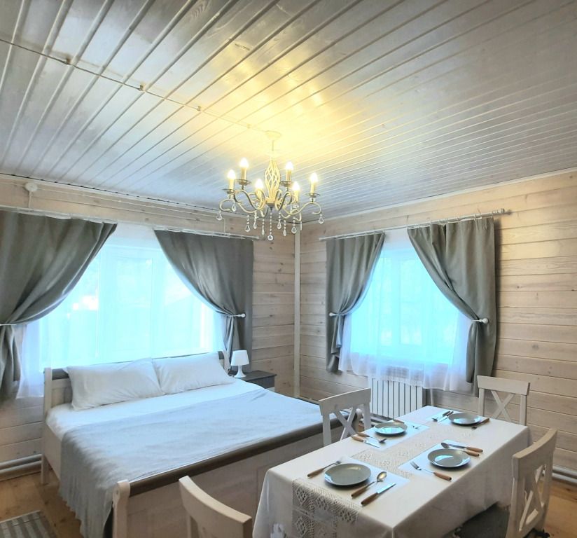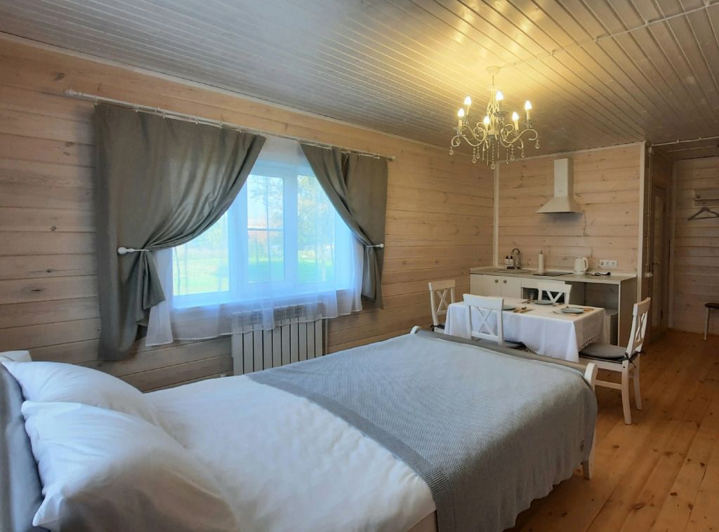 Гостевой дом подходит для спокойного отдыха. К услугам гостей шесть двухместных комнат, оформленных в загородном стиле и обставленных деревянной мебелью, а также одна студия для семейного отдыха. В доме есть Wi-Fi.