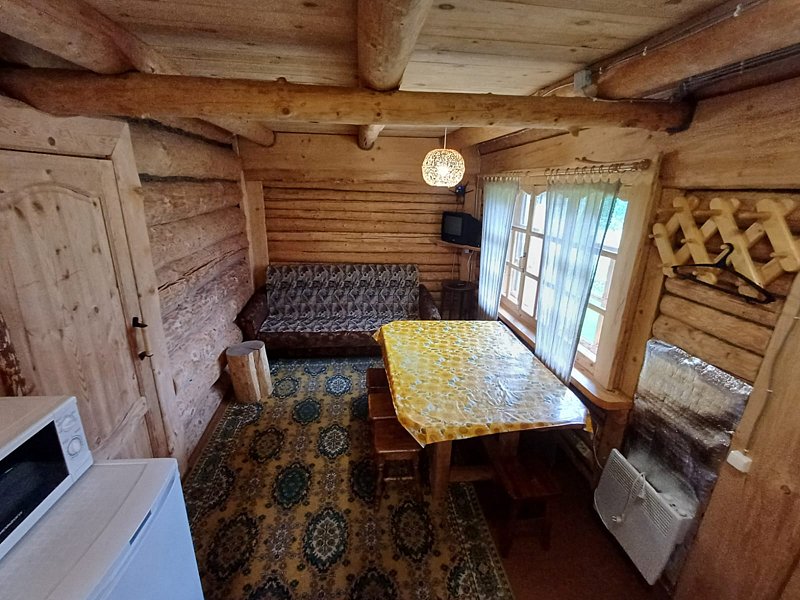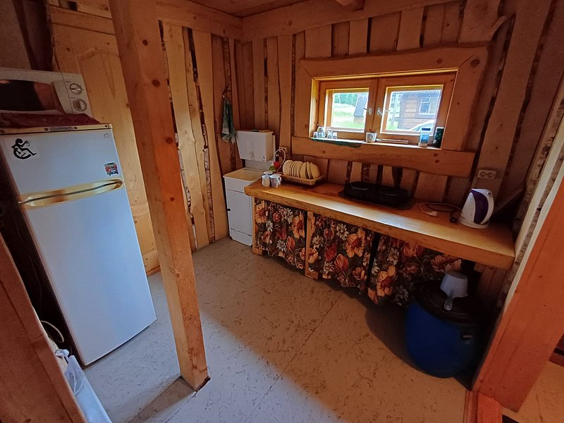 В домиках в жару не жарко, а если прохладно, то можно включить конвекторы. Конвекторы расположены в каждой комнате и в туалете. Домики уютные, с биотуалетом и со всем необходимым на кухне: электроплитой, электрочайником, вместительным холодильником, посудой, умывальником с электроподогревом воды. Ванны нет, но каждый день топят баню. В домике было очень чисто, новые занавески и скатерть, чистая посуда, ковер. Я все детство провела в частном доме, поэтому прекрасно понимаю, что всякие жучки-паучки неизбежно забегают в дом, но это происходит редко). Да, может быть нет того комфорта, к которому мы привыкли в квартирах с кучей бытовой техники, но ведь отдых на природе это больше про релакс, наполнение силой, успокоение, перезагрузку, обретение тишины внутри. Про то, чтобы любоваться и дышать этим невероятно чистым воздухом.