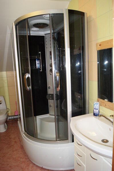 1й этаж - аналог студии: кухонная зона газовая плита, микроволновая печь, электрочайник, холодильник) с набором посуды и спальня в одном помещении. В доме 2х спальная кровать и 2 раскладывающихся кресла. Санузел душ, туалет, раковина. Просторная незастекленная веранда. Собственная котельная.