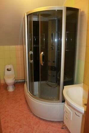1й этаж: 4 спальни, 2 санузла (1 - туалет, раковина; 2 - душ, туалет, раковина), стол в холле + тв, миникухня (газовая плита, микроволновая печь, электрочайник, холодильник) с набором посуды. Незастекленная веранда