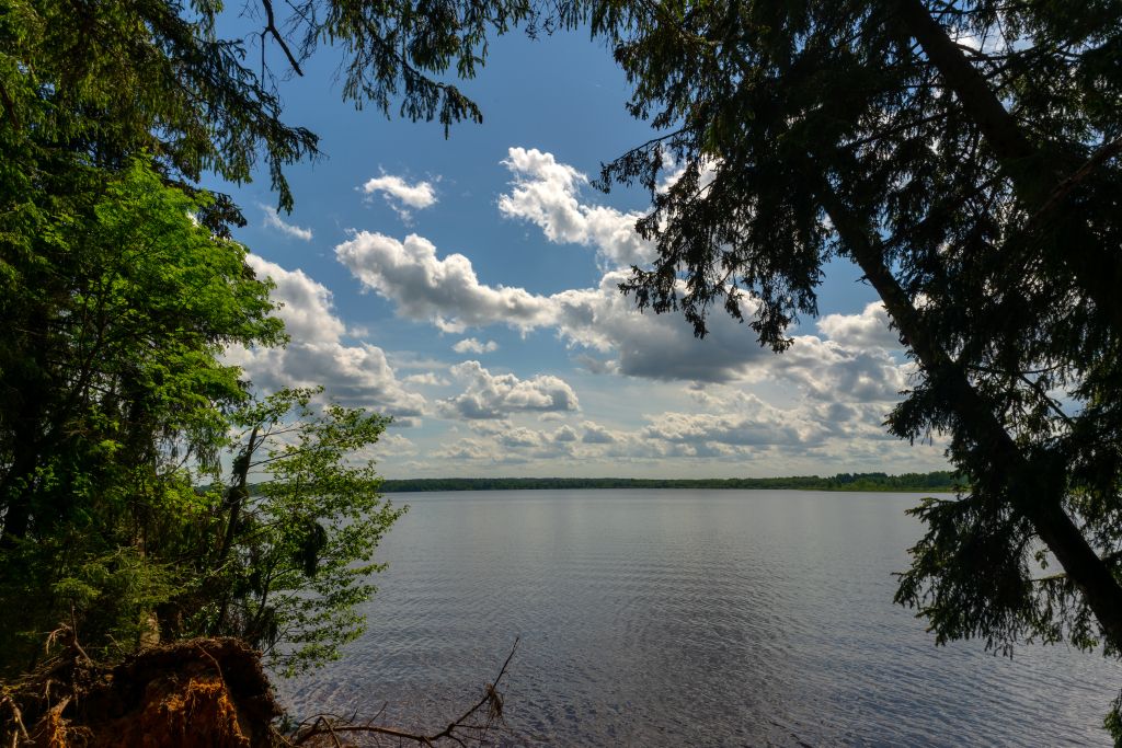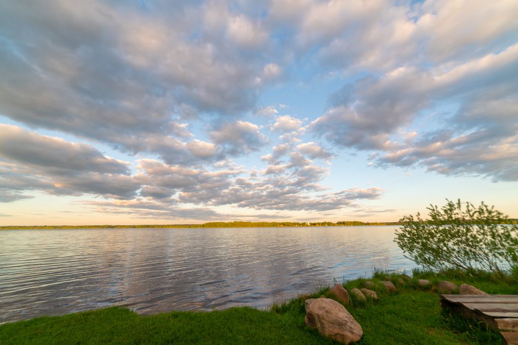 В тихие безветренные дни озеро выглядит особенно красиво и величаво. В застывшей зеркальной глади отражаются прибрежные деревья, голубое небо с белыми облаками. В такие часы приятно выплыть на лодке, заякориться и в трепетном волнении наблюдать за поплавками в ожидании первой поклевки.