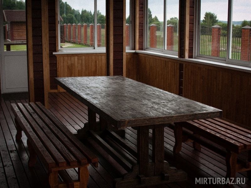 Для проживания предоставляются благоустроенные двухэтажные деревянные коттеджи.