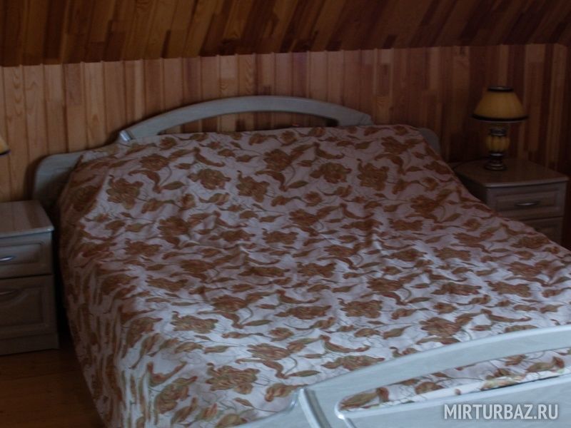 Большой удобный двухэтажный коттедж на 8 человек. На 1 этаже находится оборудованная кухня с плитой, СВЧ-печью и холодильником, а также обеденная зона с большим столом и гостиная с телевизором. На 2 этаже расположены три спальные комнаты. Также в коттедже два санузла с душем.