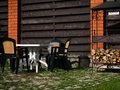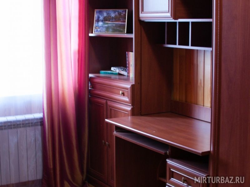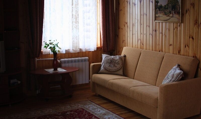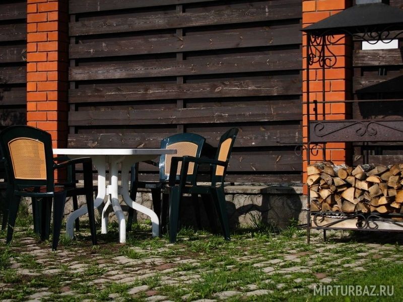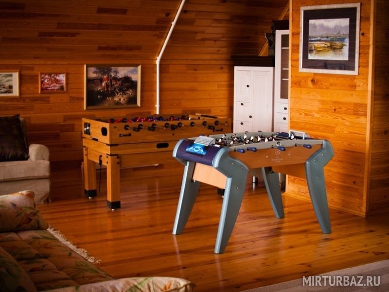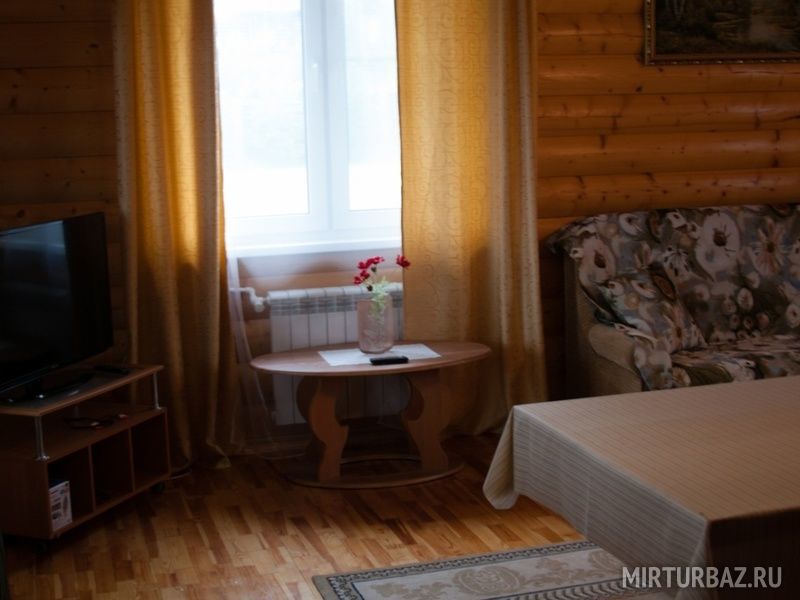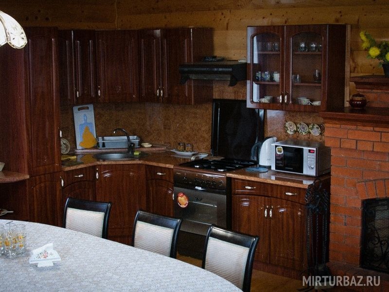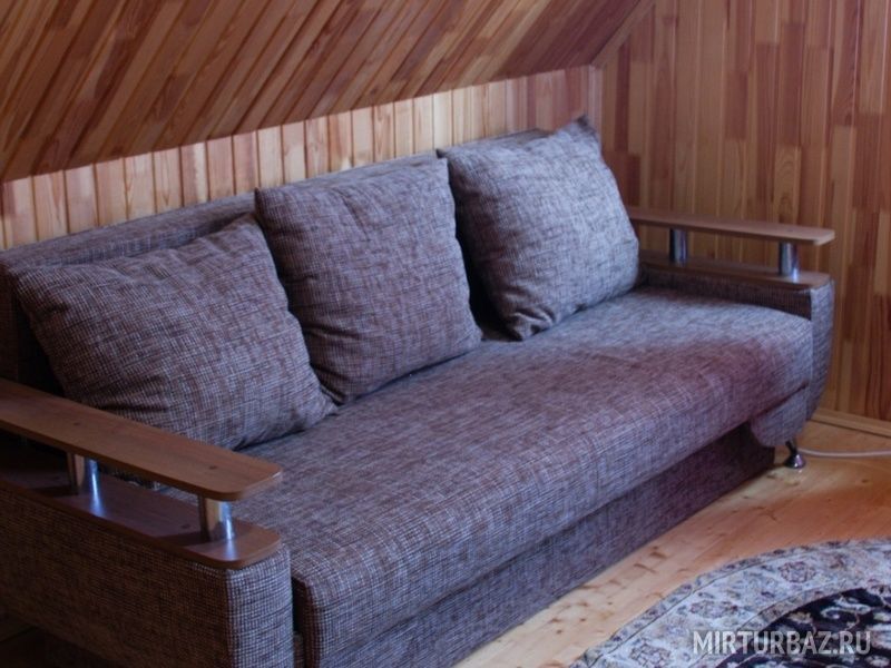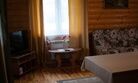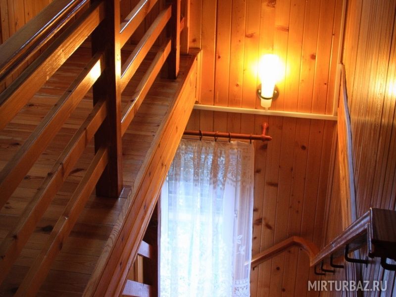 Большой удобный коттедж, разделенный на три части (по 5 человек) с отдельными входами. В каждой части на 1 этаже находится оборудованная кухня с плитой, СВЧ-печью и холодильником, обеденная зона со столом и гостиная, на 2 этаже – спальная комната.