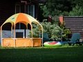 Ваши детки смогут поиграть на детской площадке с батутом, горкой и песочницей.