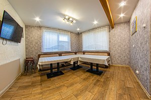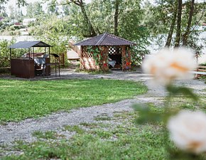 Также к вашим услугам уютная летняя беседка, лаундж-зона и открытая летняя площадка для проведения банкетов.