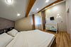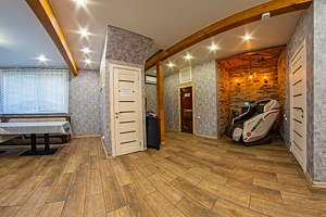 На первом этаже вы найдете жаркую сауну, полностью оборудованную кухню с необходимой техникой и посудой, уютную гостиную с камином и массажным креслом, а также просторную столовую зону с большим обеденным столом. Кроме того, здесь установлена светомузыка со стробоскопом, мощная стереосистема и караоке для веселых посиделок.