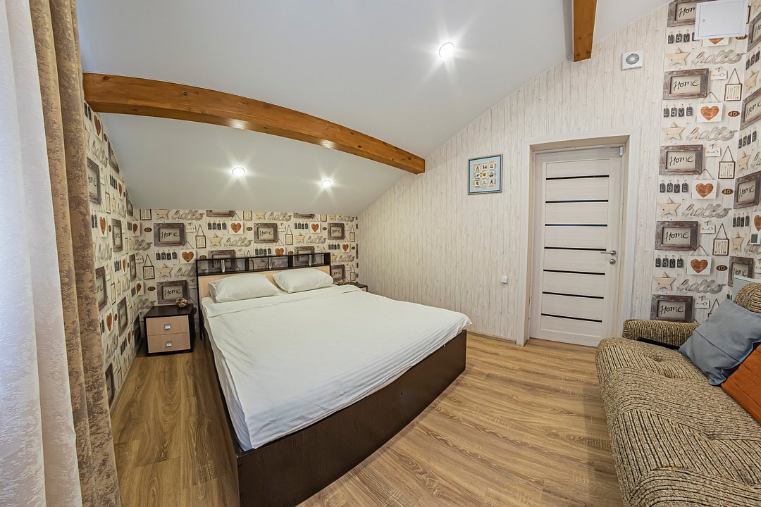 - 10 спальных мест (3 отдельные комнаты с двуспальными кроватями на 2 этаже, в одной из них есть раскладной диван, и диван в гостиной на втором этаже);