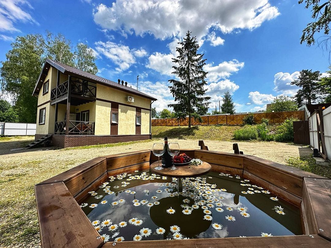Коттедж с волшебной красивой территорией и личным выходом к озеру. В домике есть жаркая сауна, банный чан и летний каркасный бассейн. Домик идеально подходит для любого праздника: свадьбы, корпоратива, вечеринки и дня рождения. Летом можно искупаться в озере, а зимой покататься с горки на ватрушках.