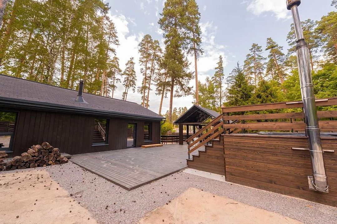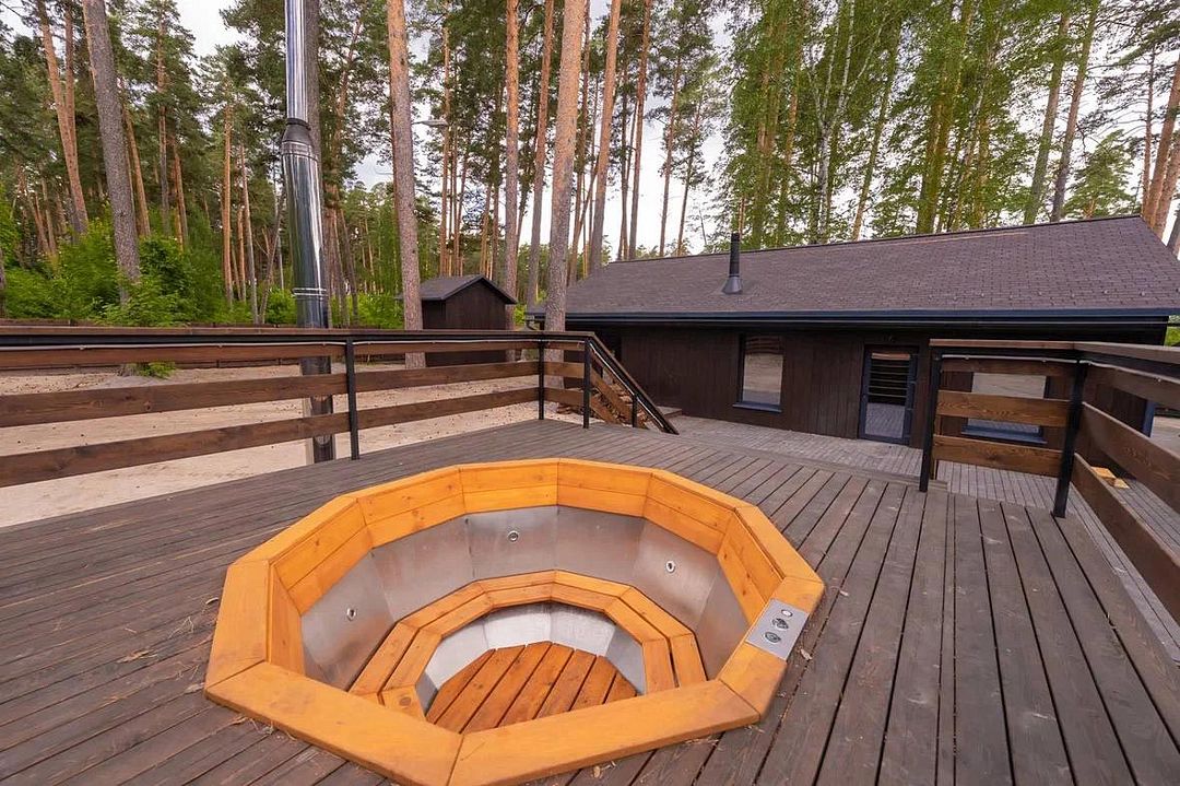 На просторной, огороженной территории расположены крытая беседка, зона барбекю с решетками и шампурами, парковка на 4 машины, банный чан с гидромассажем и лаунж-зона с красивой подсветкой. Всё это создаёт идеальные условия для комфортного отдыха и релаксации.