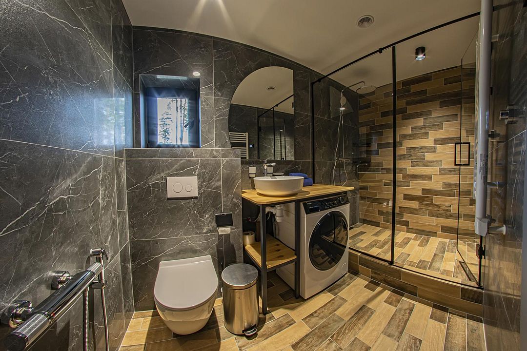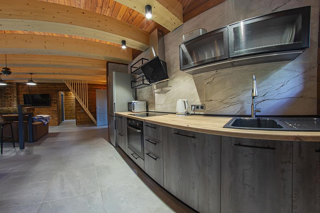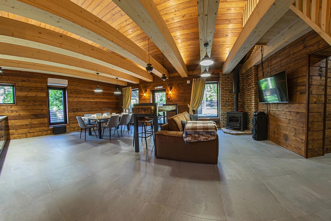 Домик с дизайнерским ремонтом в современном стиле подходит и для вечеринки с самыми близкими, и для уютных семейных вечеров.