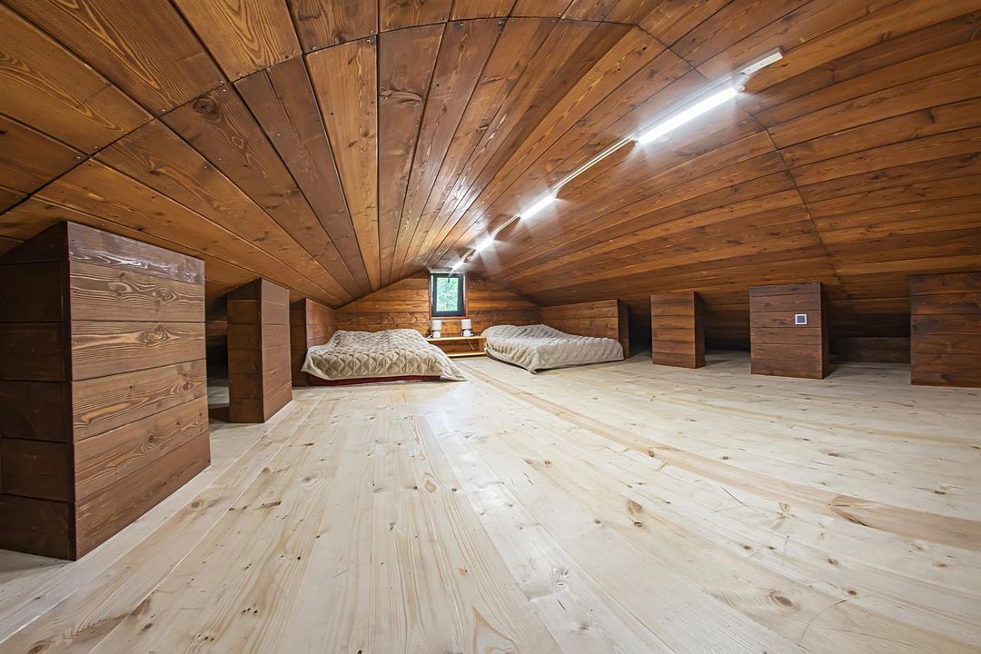 - 10 спальных мест (двуспальный диван на первом этаже, 2 отдельные комнаты с двуспальными кроватями на 1 этаже, комната с 2 двуспальными кроватями на втором этаже);