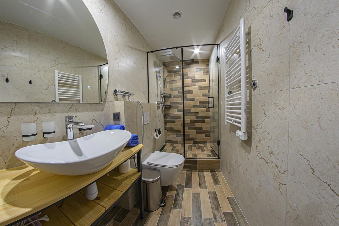 - полностью оборудованная кухня (микроволновая печь, электрический чайник, плита);