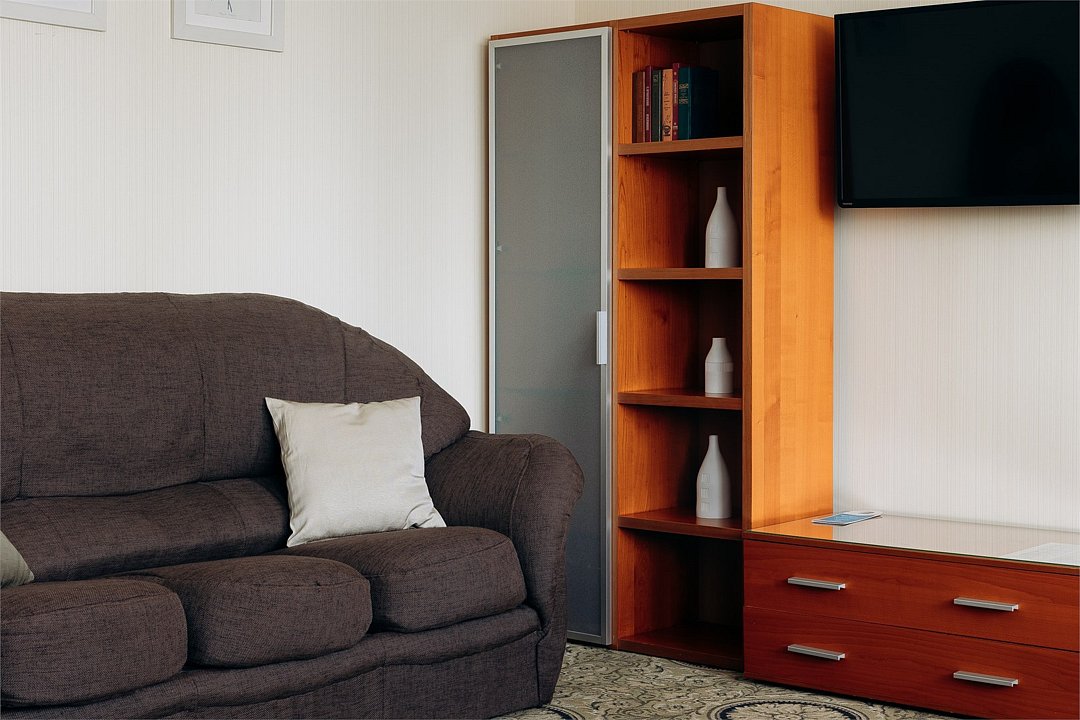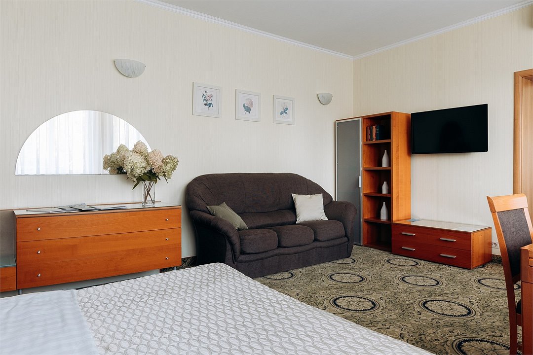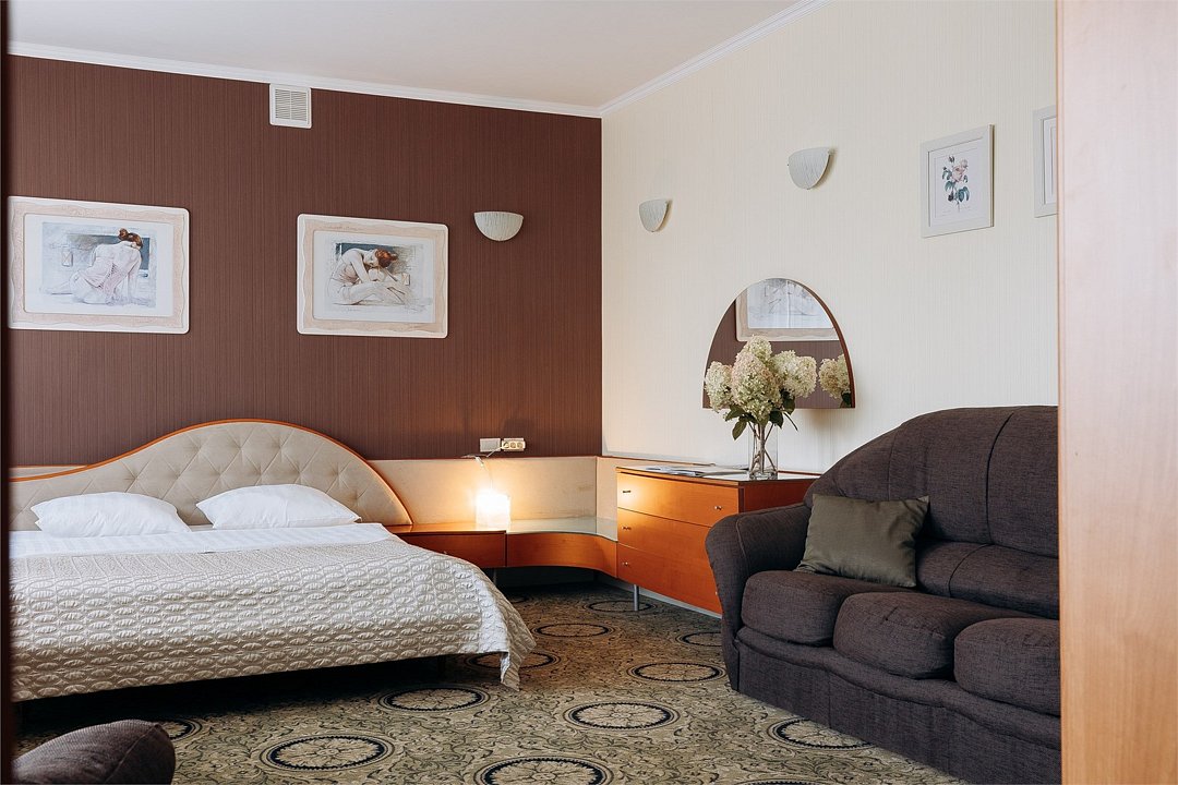 Двухкомнатный Комфорт - двухкомнатный номер 40 кв м Для Вас, если вы четко разделяете работу и друзей от своего личного пространства. Гостиная позволит вам сохранить уединенность спальни, принимая гостей или работая. Мы создали этот номер с заботой и фирменным гостеприимством Для Вас и учли пространство для работы, встреч и большого багажа. Дорогой гость, забронируйте свой номер прямо сейчас, а мы уже ждем вас с искренней любовью и улыбкой.Услуги и удобства
