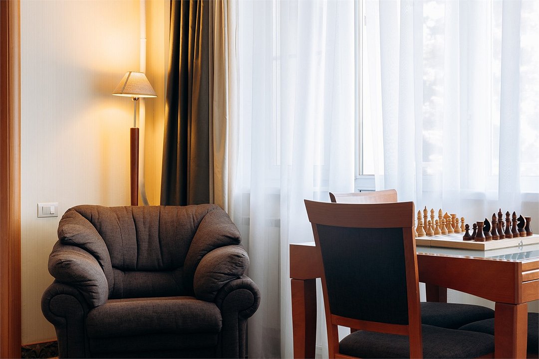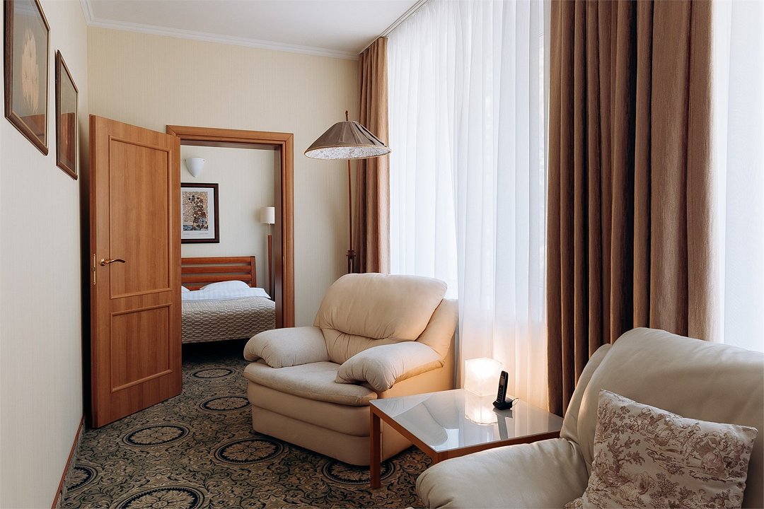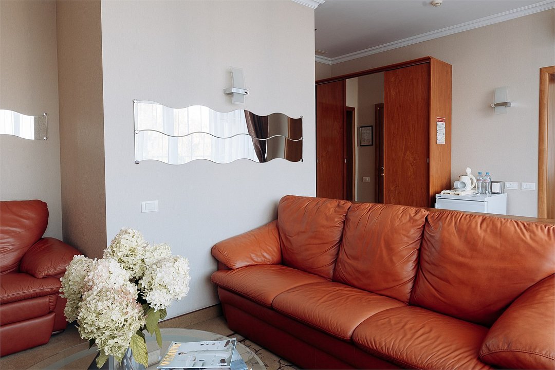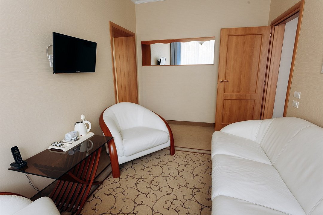 Джуниор-сюит - просторный, светлый однокомнатный номер 50 кв м с гостиной зоной, кроватью king-size и дополнительным местом на диване. Этот номер для семей и тех, кто любит "воздух" в номере. С заботой и фирменным гостеприимством мы создали в этом номере атмосферу спокойствия и расслабления. Что может быть лучше, чем после трудового дня или роскошного праздника в нашем ресторане наполнить горячую большую ванную, добавить пены, устроиться поудобнее и вглядываться в огни города сквозь зелень деревьев, и ощущать благодарность этому дню? А после - махровый халат обнимет вас своим уютом, и вы уснете самым сладким сном. Дорогой гость, забронируйте свой номер прямо сейчас, а мы уже ждем вас с искренней любовью и улыбкой. .Услуги и удобства