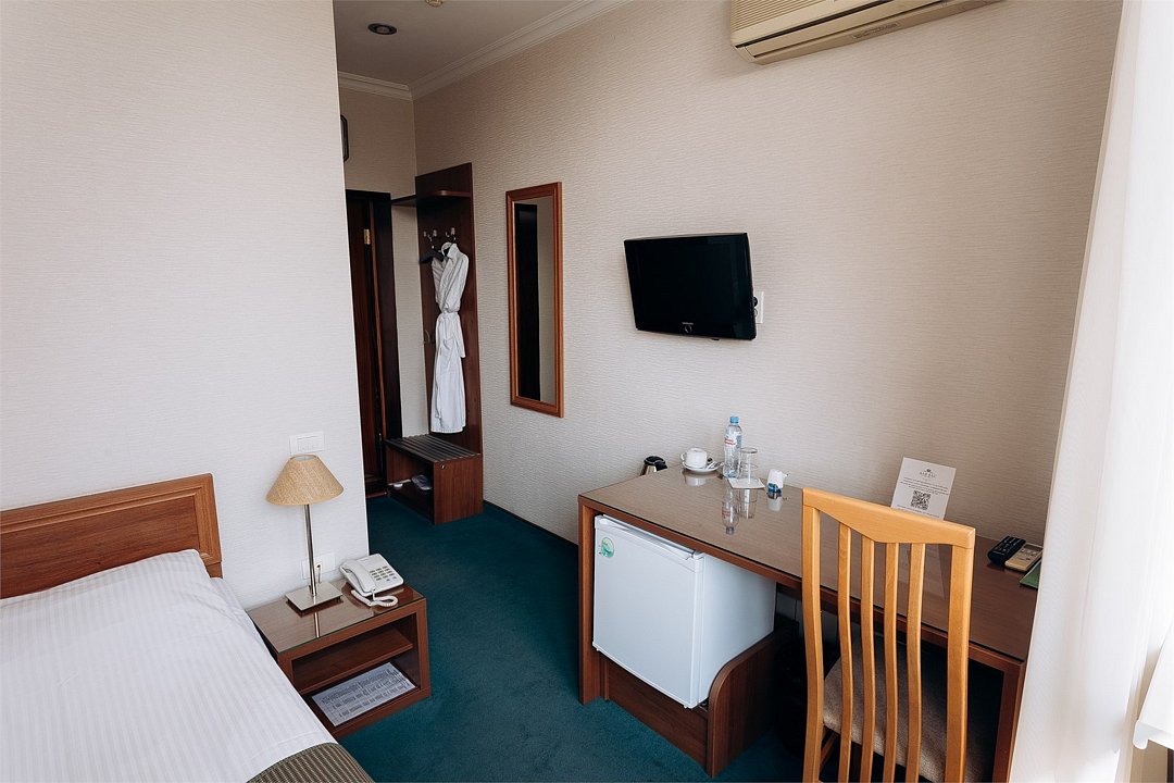 Одноместный стандарт - бюджетно, комфортно, уютно. Бережливый путник, в этом компактном номере с односпальной кроватью вы найдете всё необходимо для комфорта. Мы создали Для Вас с заботой и фирменным гостеприимством идеальные условия для работы и отдыха. Дорогой гость, забронируйте свой номер прямо сейчас, а мы уже ждем вас с искренней любовью и улыбкой.Услуги и удобства