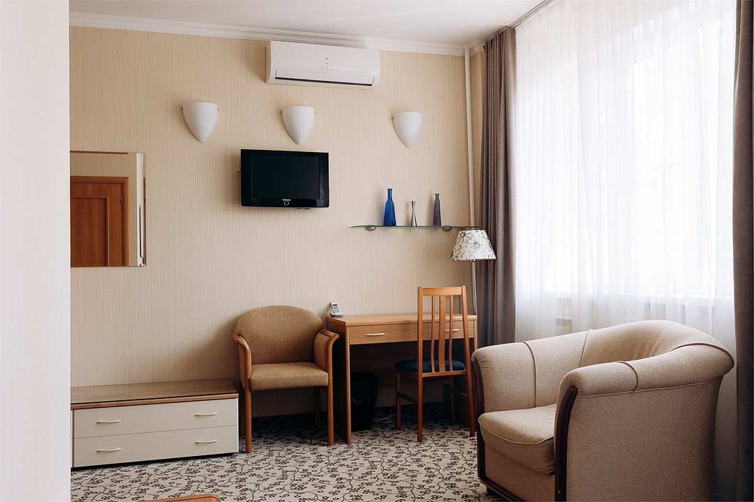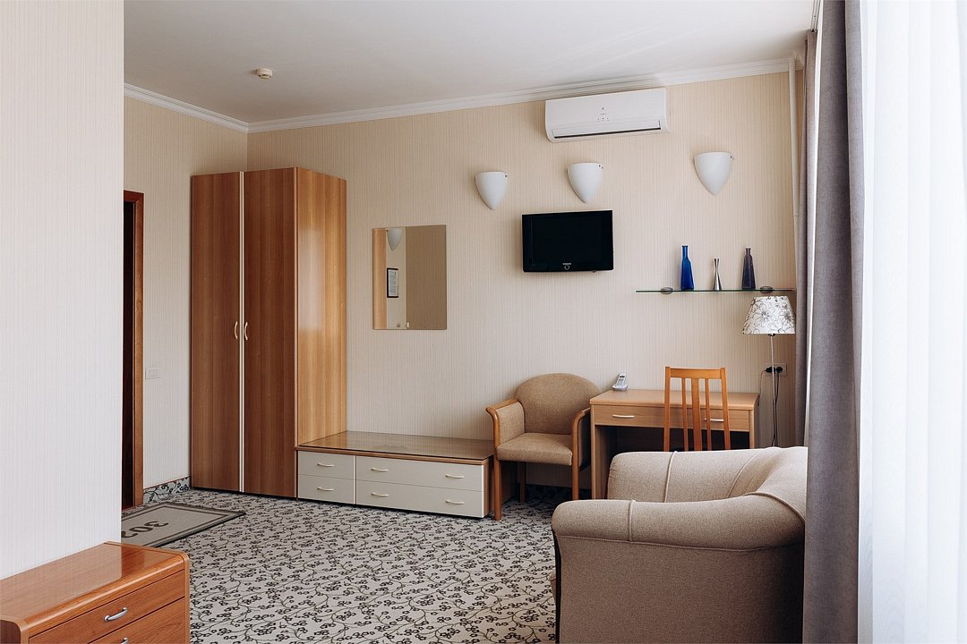 телевизор, два телевизора, кабельное телевидение, Wi-Fi, телефон, холодильник, светильник, настольные лампы, фен, электронные замки, душевая кабина, халаты, банные полотенца, тапочки, гигиенические средства, косметические средства, кровать «Queen size», двуспальная кровать, гипоаллергенное белье, кресла, тумбы, стулья, шкаф для одежды, журнальный столик, письменный стол, багажная тумба, зеркало, комод, мебельный гарнитур, две комнаты, мини-бар, обслуживание номеров, информационная карта, меню, сейф, минеральная вода, унитаз, раковина, мягкая мебель, косметическое зеркало, гостиная зона, ковровое покрытие, отопление, кулер на этаже, вид во двор, стаканы, стол, тумба, сплит-система, диван-кровать, раскладной диван, телевизор с плоским экраном, мини-холодильник, москитная сетка, номер для некурящих, гигиенический душ, чайная станция, фумигатор, межкомнатная дверь, уборка номера, услуги прачечной (платно), вешалки-плечики, бутилированная вода, мыло, затемняющая штора, зеркало в полный рост, можно с питомцамиВ номере