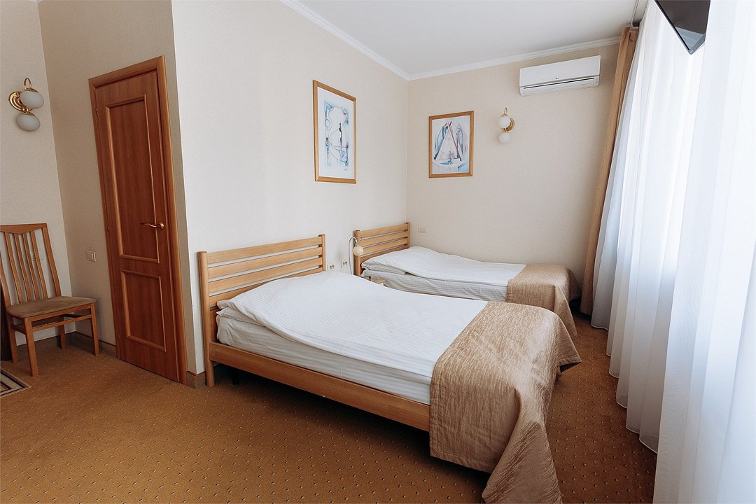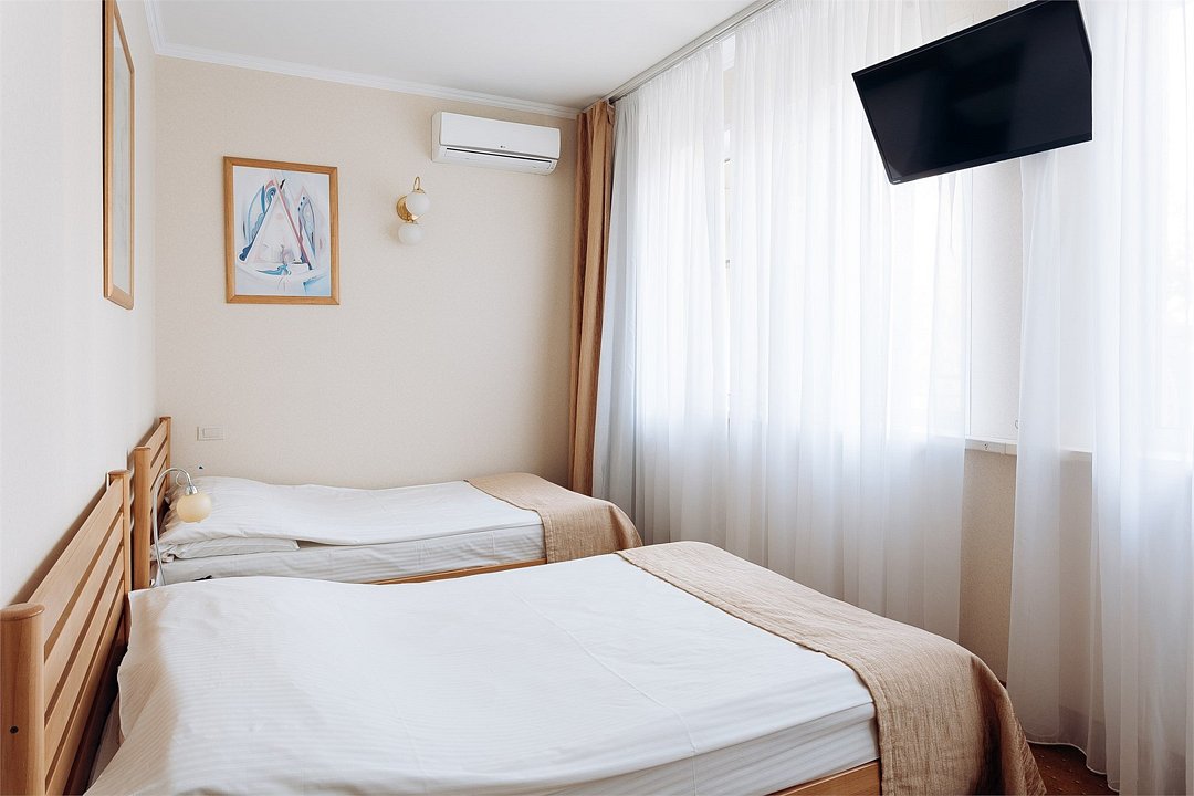 Стандарт с 2 раздельными кроватями - просторный номер площадью 25 кв м и 2 удобными полутораспальными кроватью. Этот номер для двух друзей или коллег, для команды спортсменов (у нас хватит кроватей на всех, ведь таких номеров 7), для родителя с ребенком. Мы учли потребность в широких спальных местах при проживании вдвоем на разных кроватях. Этот номер - прекрасное решение Для Вас, кто ценит коллективную работу в командировке или компанию в путешествии. Дорогой гость, забронируйте свой номер прямо сейчас, а мы уже ждем вас с искренней любовью и улыбкой.Услуги и удобства