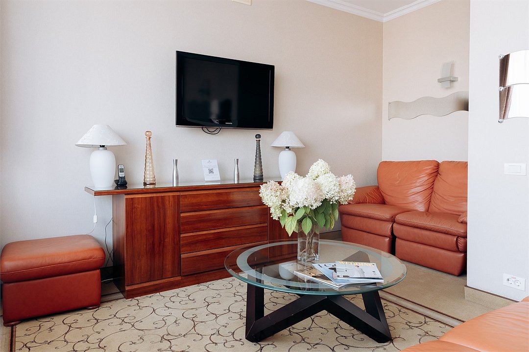 телевизор, два телевизора, кабельное телевидение, Wi-Fi, телефон, холодильник, светильник, настольные лампы, фен, электронные замки, ванна, санузел, дополнительный санузел, биде, халаты, банные полотенца, тапочки, гигиенические средства, косметические средства, балкон, балкон с красивым видом, лоджия, кровать «King size», двуспальная кровать, гипоаллергенное белье, диван, кресла, тумбы, стулья, шкаф для одежды, гардеробная, вешалки, журнальный столик, письменный стол, стол для переговоров, багажная тумба, зеркало, комод, мебельный гарнитур, две комнаты, мини-бар, письменные принадлежности, набор посуды, обслуживание номеров, информационная карта, меню, сейф, чайник, унитаз, раковина, мягкая мебель, косметическое зеркало, гостиная зона, ковровое покрытие, отопление, душ, кресло, стаканы, столовые приборы, тумба, сплит-система, вид на парк, диван-кровать, раскладной диван, телевизор с плоским экраном, москитная сетка, шкаф-купе, номер для некурящих, чайная станция, фумигатор, межкомнатная дверь, уборка номера, услуги прачечной (платно), вешалки-плечики, бутилированная вода, мыло, затемняющая штора, зеркало в полный рост, можно с питомцамиВ номере