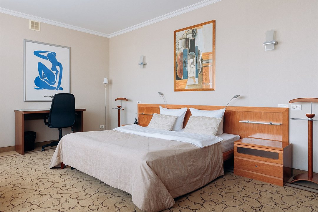 Стандарт Комфорт с 1 большой кроватью - просторный номер Для Вас, если путешествуете парой или просто любите спать один в позе звездочки. Главный плюс - это пространство в номере: целых 25 кв м. и кровать king-size. Мы создали этот номер с заботой и фирменным гостеприимством Для Вас и учли пространство для работы, встреч и большого багажа. Дорогой гость, забронируйте свой номер прямо сейчас, а мы уже ждем вас с искренней любовью и улыбкой.Услуги и удобства