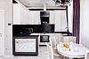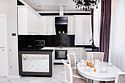 Кухня включает микроволновую печь, электрический чайник, плиту и холодильник. Также имеется посуда для готовки (салатники, ножи и разделочные доски), а также набор посуды на пятнадцать человек, включающий глубокие и плоские тарелки, кружки для чая, бокалы под сок, рюмки, фужеры, ложки, вилки и ножи.