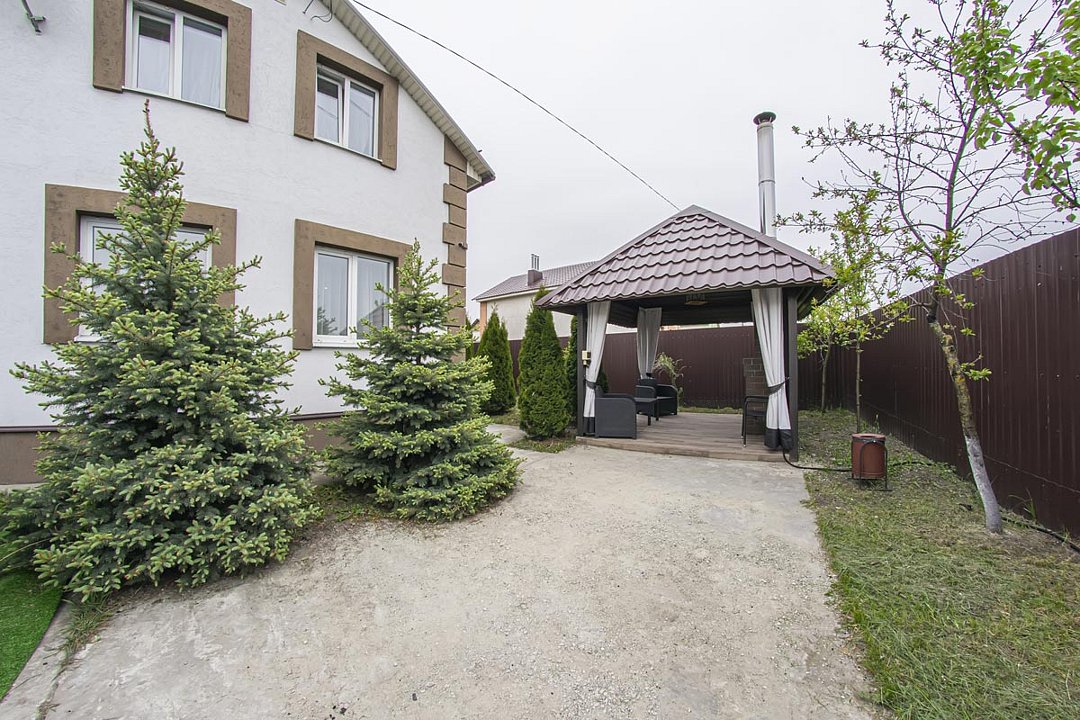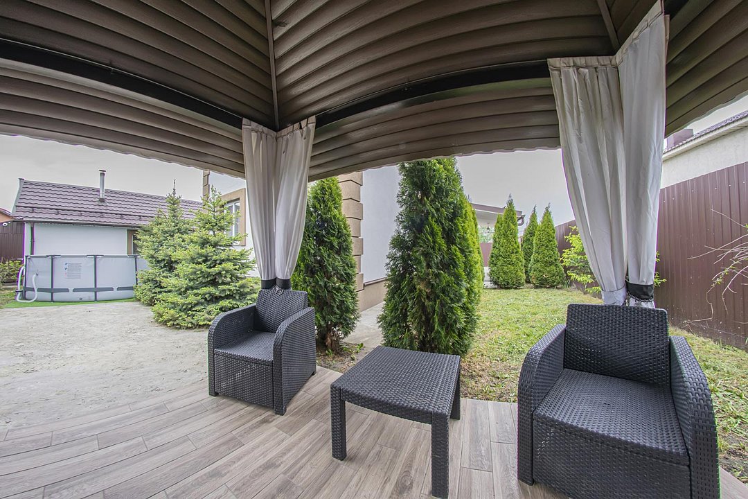 Для любителей отдыха на свежем воздухе предусмотрена зона барбекю с мангалом. Летом вы сможете освежиться в каркасном бассейне. В вечернее время вы сможете наслаждаться атмосферой лаунж-зоны с подсветкой, а крытая беседка станет отличным местом для отдыха в любую погоду.