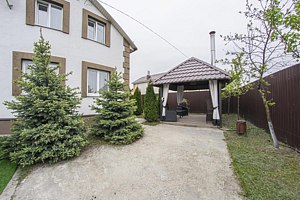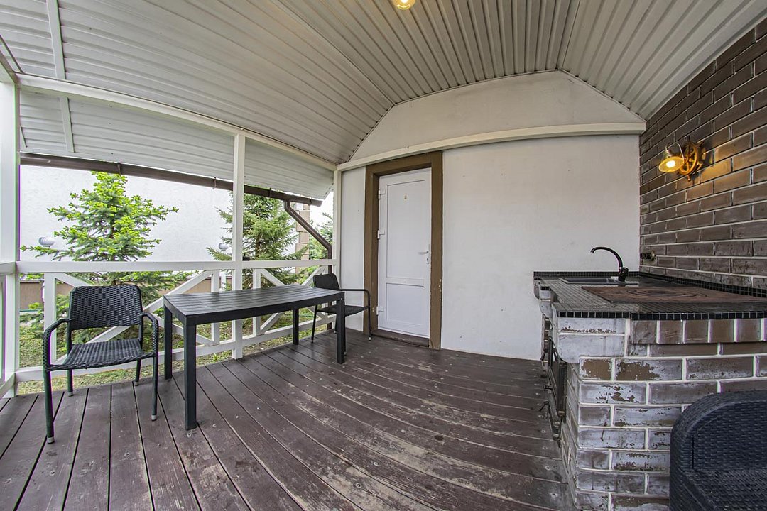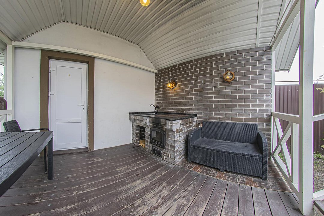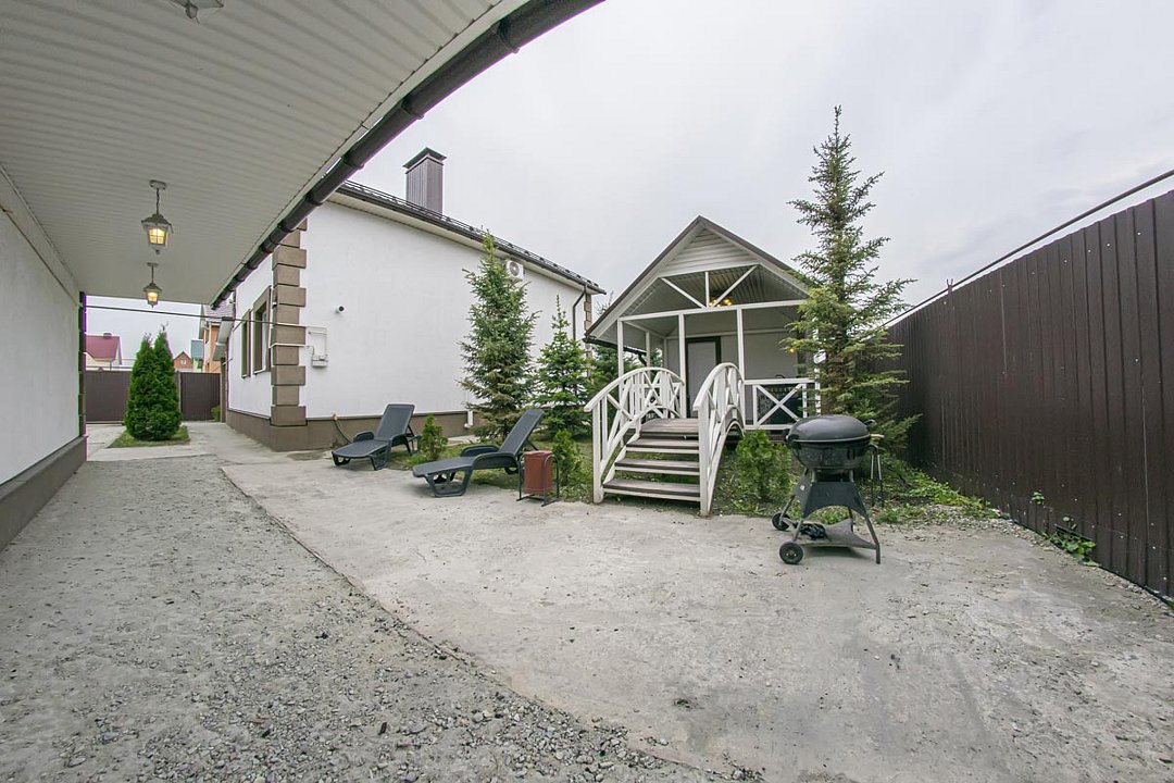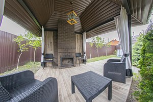 На участке есть зона барбекю, беседка и мангал. У домика просторная и живописная территория, а летом есть каркасный бассейн. Также к вашим услугам банкетная зона на 15 посадочных мест и просторная гостиная с мощной стереосистемой и караоке.