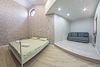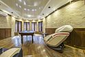 На первом этаже расположена просторная банкетная зона с кухней и круглым столом. На втором этаже есть бильярдный стол, массажное кресло и спальные места.