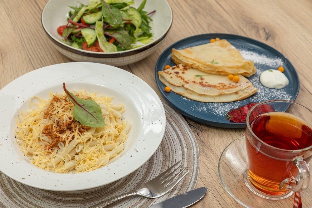 В отеле работает столовая. где отдыхающие могут заказать себе завтраки и обеды. В распоряжении гостей охраняемая парковка перед зданием, беспроводной интернет, доступны услуги прачечной. Встречи, переговоры, небольшие совещания можно провести в обустроенной лаунж-зоне. Для детей работает игровая комната с настольными играми, есть видеозал, а малышам отель предоставляет стульчики для кормления.