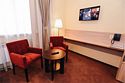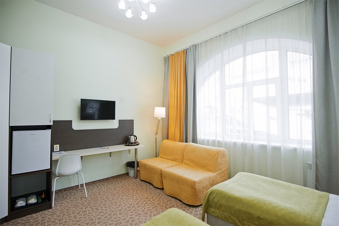 Комфортабельные однокомнатные номера с двумя односпальными кроватями (90*200)/одной двуспальной кроватью king-size (180*200) и двумя раскладными креслами. Номера данной категории расположены на 1 этаже отеля. Для детей до 3-х лет детская кроватка предоставляется бесплатно по запросу. Бесплатное проживание детей до 6 лет при размещении на одном спальном месте с родителями.Услуги и удобства