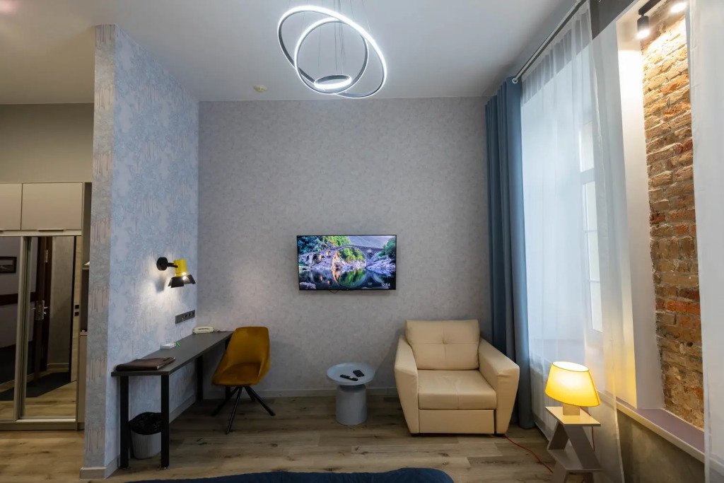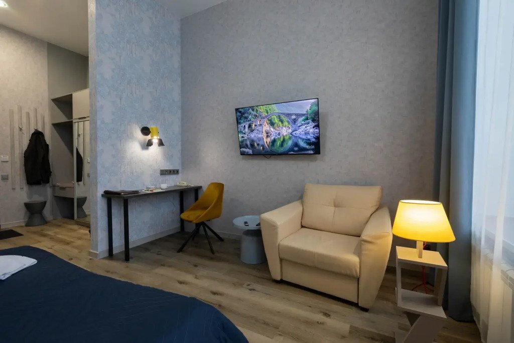 Чтобы вы могли отдохнуть после долгого дня, в номере есть телевизор и халат. Перечисленные услуги есть не во всех номерах.
