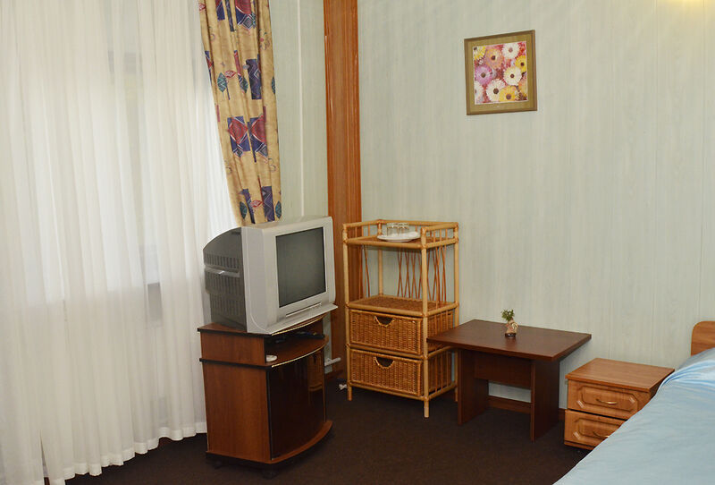 - В номерах: двуспальная кровать, плазменный телевизор, шкаф для одежды, холодильник.
