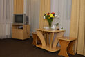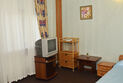 - В номере: двуспальная кровать, плазменный телевизор, шкаф для одежды, холодильник.