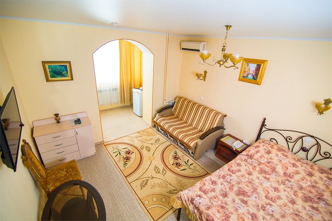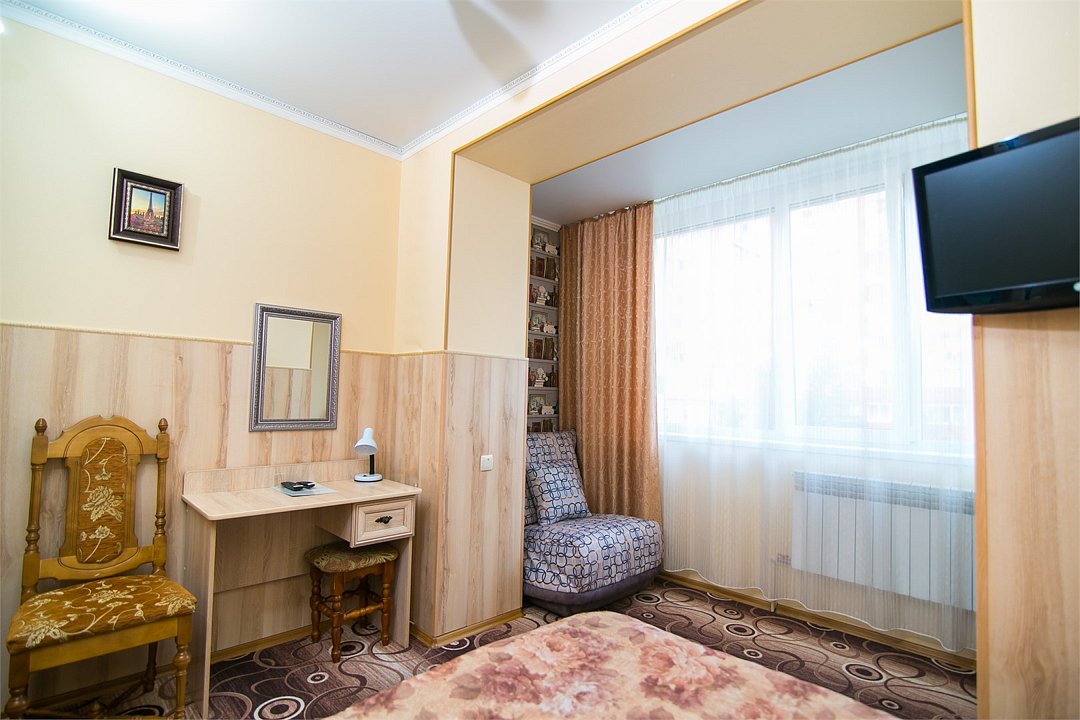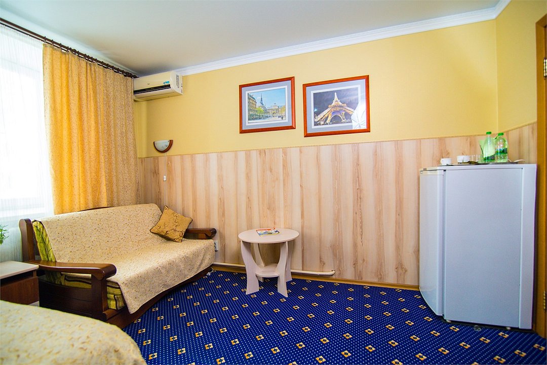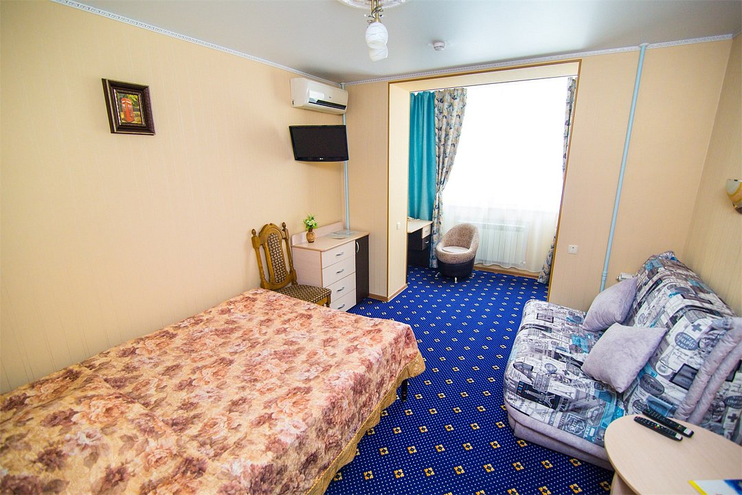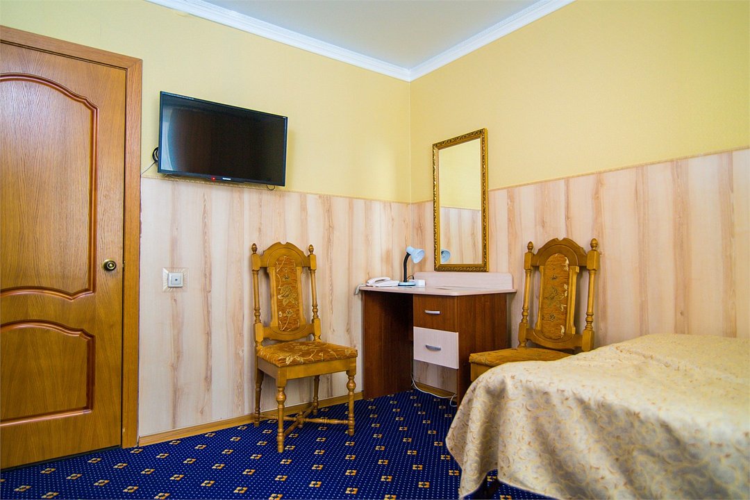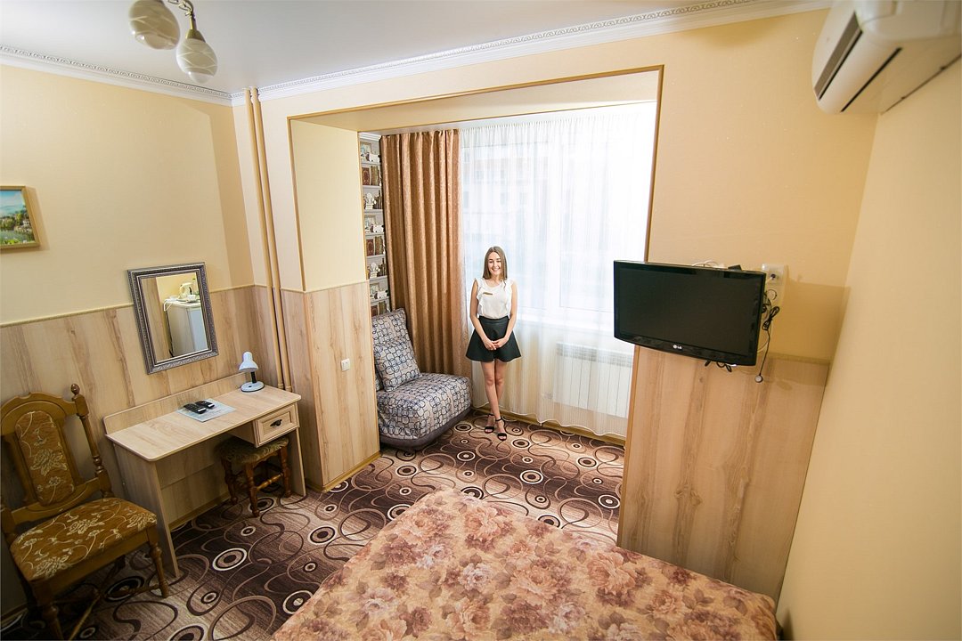 Комфортабельный одноместный номер подойдет для проживания на короткий срок, если вы путешествуете один. Площадь комнаты: 18 кв.м.В каждом номере: большая кровать (1,40 м.) ЖК телевизор ванная комната кондиционер телефон Wi-fi (200 мбит ) холодильник лоджияУслуги и удобства