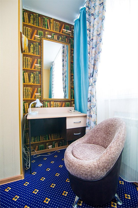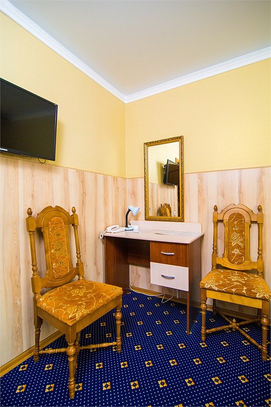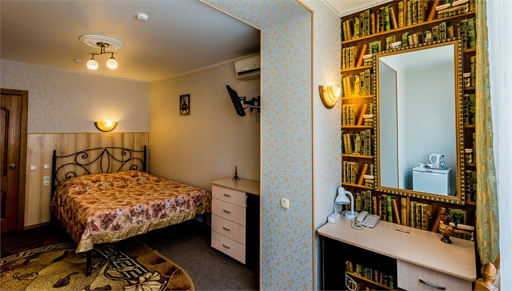 Просторный однокомнатный номер. Площадь жилой комнаты в этом номере составляет 20 м2. Номер состоит из спальни и собственной ванной комнаты со всеми необходимыми туалетными принадлежностями и феном. Номер категории «Полулюкс» имеют всё самое необходимое для спокойного и уютного отдыха, и призван удовлетворить каждого ценителя комфорта. Будь это гость Пензы или житель столицы, которому понадобился гостиничный однокомнатный номер. Уютный однокомнатный номер обставлен новой мебелью и современной техникой - оптимальное решение для любого, даже очень взыскательного гостя.Услуги и удобства