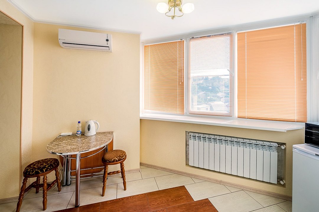 В номере: - Большая кровать (1,60 м) - ЖК телевизор - Ванная комната - Кондиционер - Телефон - Интернет (бесплатно) - Холодильник - Лоджия Площадь номера 19 кв.м.Услуги и удобства