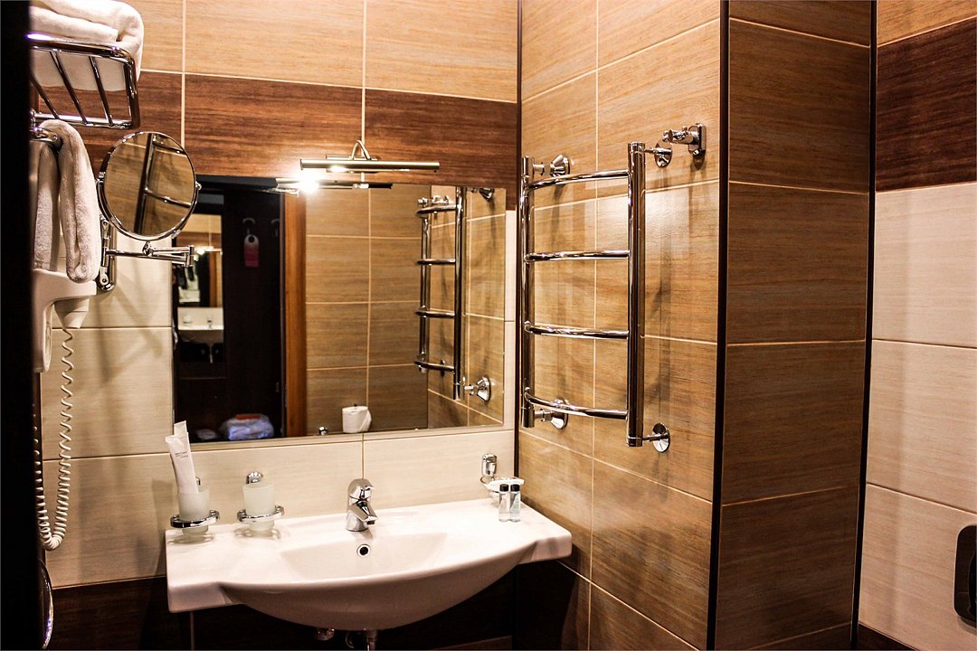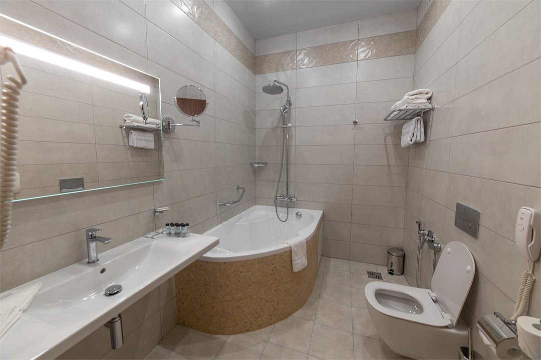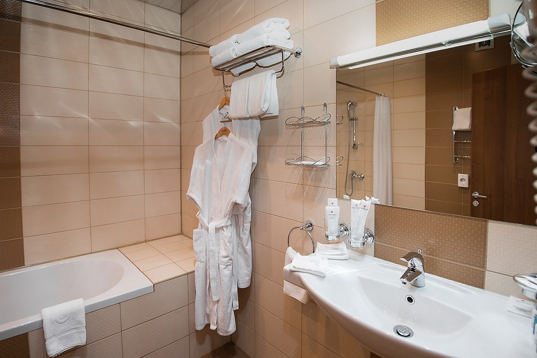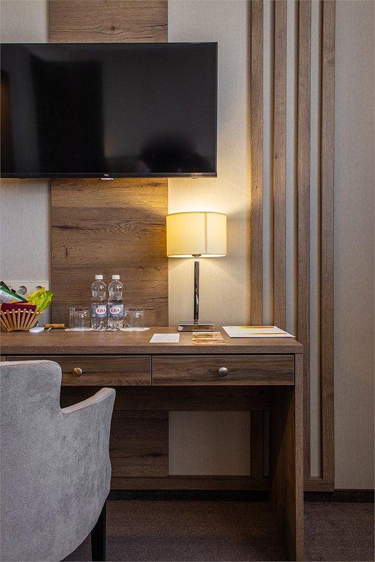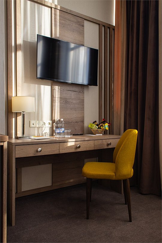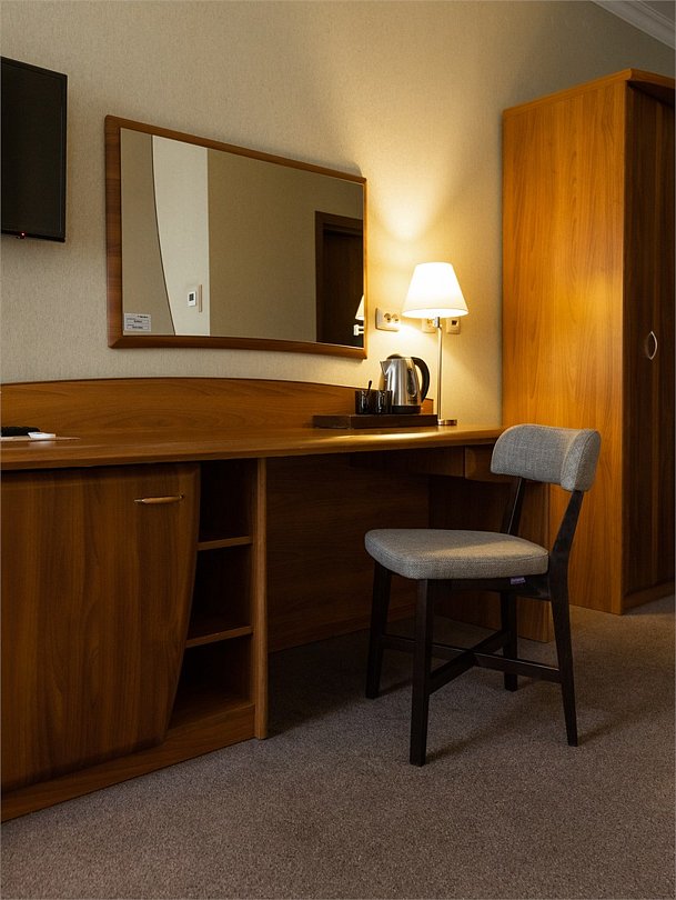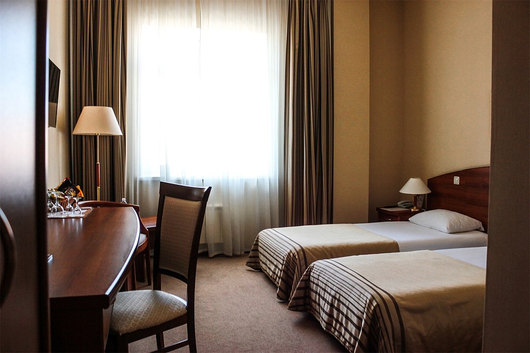 Приятная цветовая гамма, эргономичная мебель и просторное рабочее место - ключевые пункты при выборе номера для командировок. Стандарт с двумя кроватями отлично подойдет для деловых гостей города, предоставляя отличное место для работы и отдыха! Интерьер номера включает как традиционные, так и современные элементы. В удобной ванной комнате все необходимые косметические принадлежности и комплект полотенец.Услуги и удобства