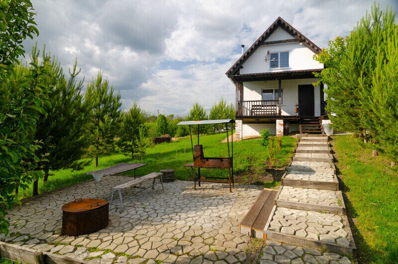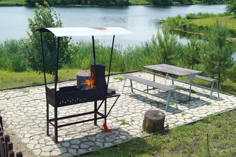 У каждого дома имеется индивидуальная мангальная зона с мангалом, обеденным столом и лавочками.