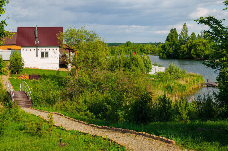 Семейный отдыхДостоинстваНам с мужем тут очень понравилось. Весьма живописное и тихое местечко. Рядом находится красивый пруд. Интерьер базы отдыха максимально приближен под стилистику деревни или что-то в этом роде. За территорией следят. Можно погулять в окрестностях и насобирать клубнику или землянику. Мы жили в двухэтажном коттедже. Комнатка у нас была уютная. На территории можно воспользоваться мангалом.