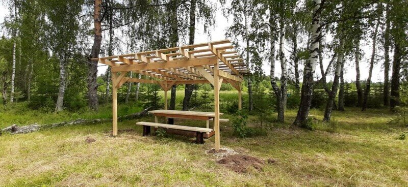 - крытая беседка со столом и скамейками;
