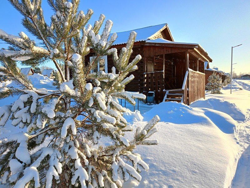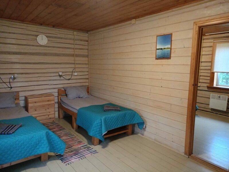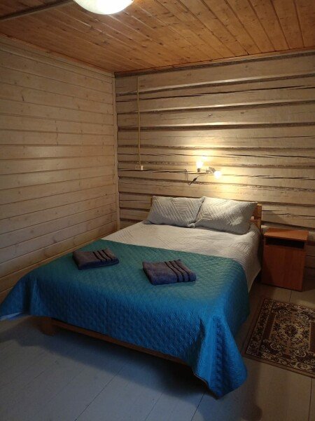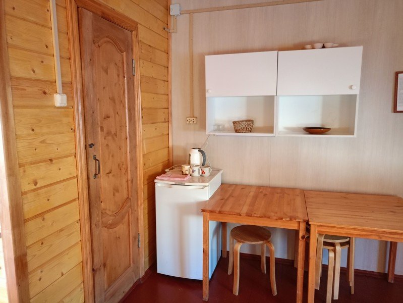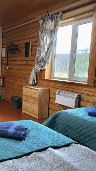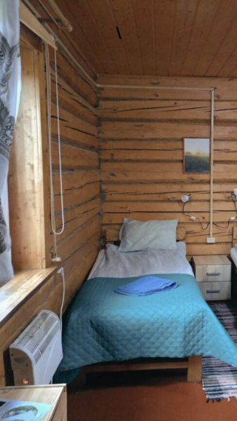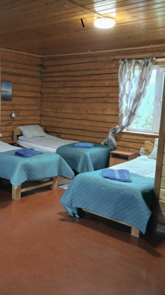 В домике два 2-х местных номера. Номера оборудованы 2 односпальными или 1 двуспальной кроватями, холодильник, набор посуды для приготовления пищи. В каждом номере отдельный санузел с горячей водой в душе. Все номера с отоплением.