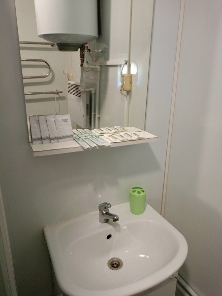 Санузел и душ в отдельном модуле в 50 м от глэмпинга.
