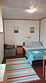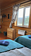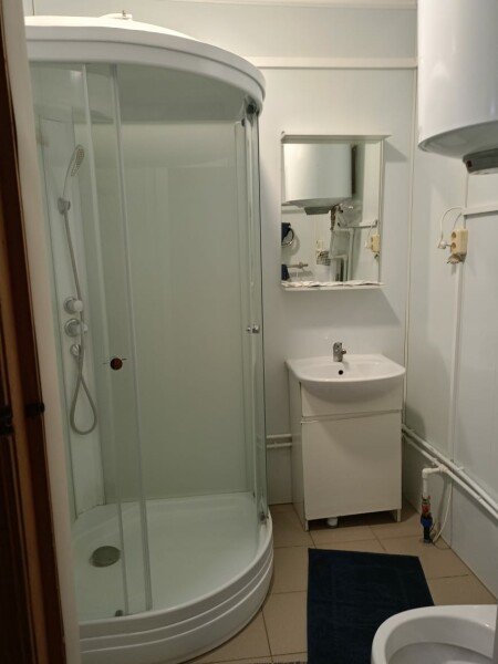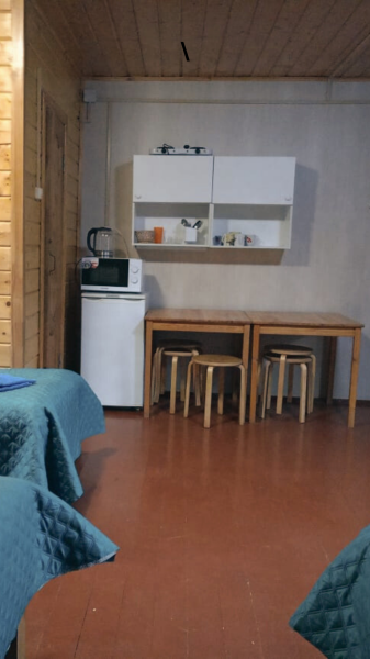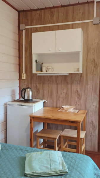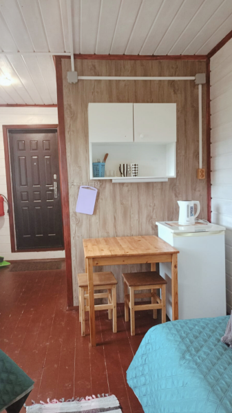 5 местный домик со всеми удобствами (кухня, душ, туалет, горячая вода, отопление). 5 односпальных кроватей.