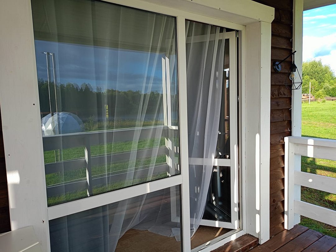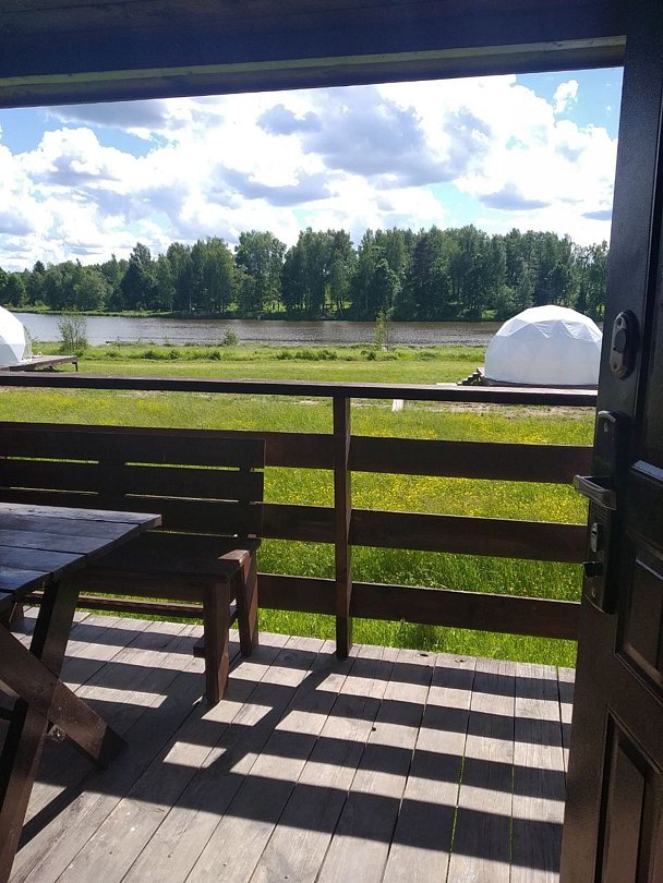 Глэмпинг с видом на озеро и верандой